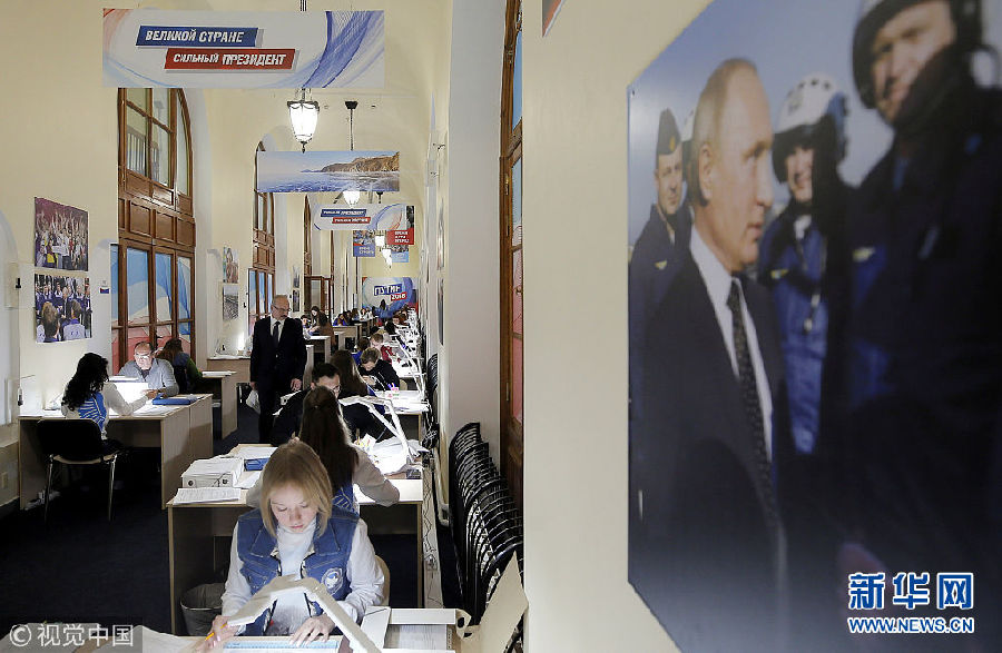 當(dāng)?shù)貢r間2018年1月17日,俄羅斯莫斯科,俄羅斯總統(tǒng)普京大選競選總部的志愿者核查收集到的支持普京參選的簽名。(圖片來源:視覺中國)