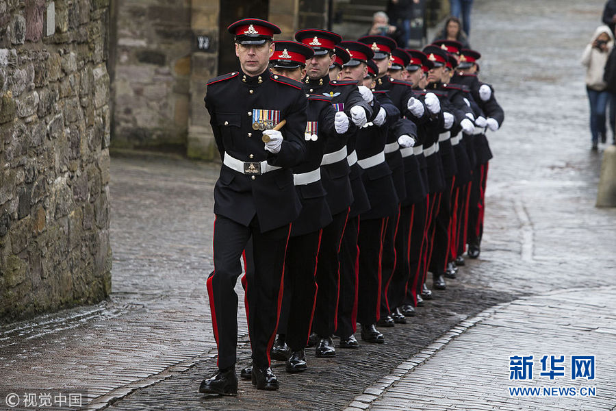 英國(guó)皇家炮兵在愛丁堡城堡鳴響21響禮炮 紀(jì)念女王登基66周年