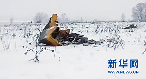 這是2月11日在俄羅斯莫斯科附近拍攝的墜毀客機的殘骸(視頻截圖)。新華社/美聯(lián)