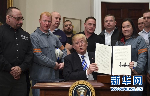 新華社華盛頓3月8日電(記者金旼旼 高攀)美國總統(tǒng)特朗普8日簽署公告對進(jìn)口鋼鐵和鋁產(chǎn)品征收高關(guān)稅。美國的這一最新貿(mào)易保護(hù)措施已在美國國內(nèi)以及國際社會遭到廣泛反對。