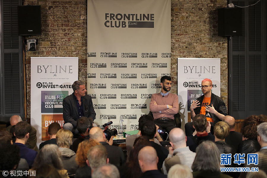 當?shù)貢r間2018年3月26日,英國倫敦,被指泄露并利用了5000萬臉書用戶數(shù)據(jù)的政治數(shù)據(jù)公司“劍橋分析”近日被多位爆料人指出,該公司也參與了支持英國脫歐的活動。一位為英國脫歐組織“投給脫歐”工作過的爆料人Shahmir Sanni和“劍橋分析”前員工Christopher Wylie出席活動。(圖片來源:視覺中國)