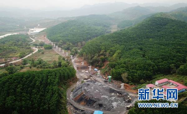 這是3月27日在老撾南塔省航拍的正在施工建設(shè)中的橋梁。新華網(wǎng)發(fā) 劉艾倫攝
