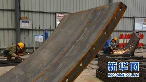 3月27日,在老撾南塔省,中鐵五局工人在車間內加工鐵路施工材料。新華網發(fā) 劉艾倫攝