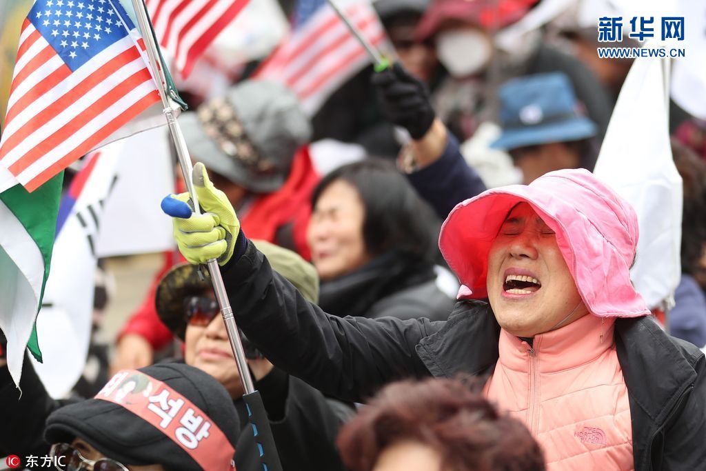 4月6日,韓國首爾,在首爾中央地方法院前,舉行集會的韓國前總統(tǒng)樸槿惠的支持者得知樸槿惠一審獲刑24年傷心落淚。據(jù)報道,首爾中央地方法院對韓國前總統(tǒng)樸槿惠作出一審宣判,判處其有期徒刑24年,罰款180億韓元(約合人民幣1.06億元)。(圖片來源:東方IC)