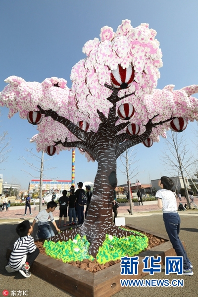 當(dāng)?shù)貢r(shí)間2018年3月28日,日本名古屋,日本樂(lè)高樂(lè)園主題公園用樂(lè)高積木堆出一棵櫻花樹(shù),被吉尼斯世界紀(jì)錄認(rèn)證為世界最高的樂(lè)高櫻花樹(shù)。(圖片來(lái)源:東方IC)
