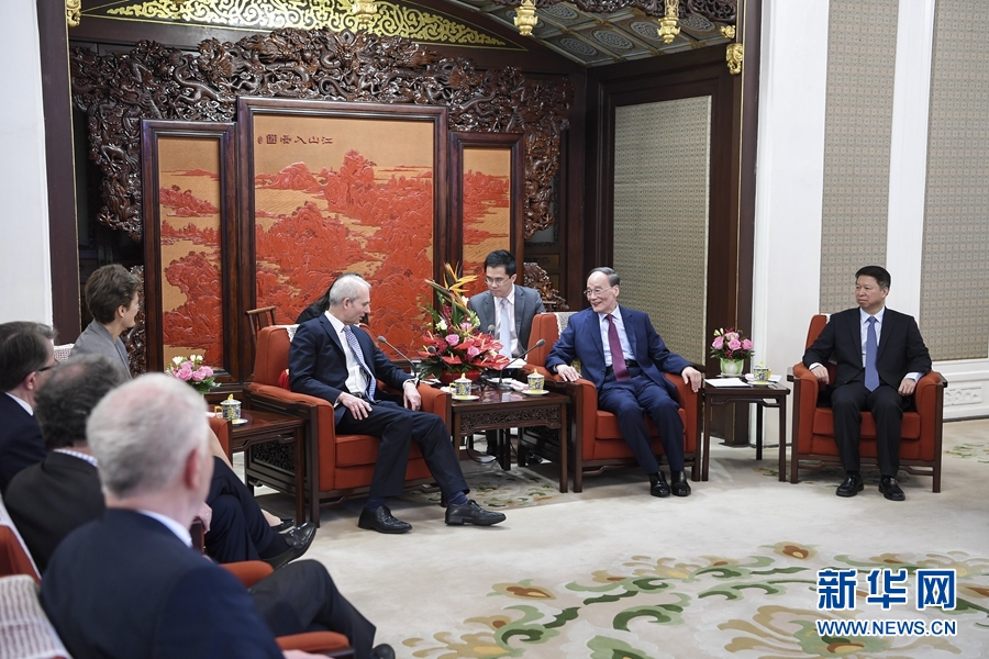 4月11日,國家副主席王岐山在北京中南海會(huì)見英國內(nèi)閣辦公廳大臣利丁頓率領(lǐng)的第十屆中英政黨對話英方代表團(tuán)。 新華社記者 張領(lǐng) 攝