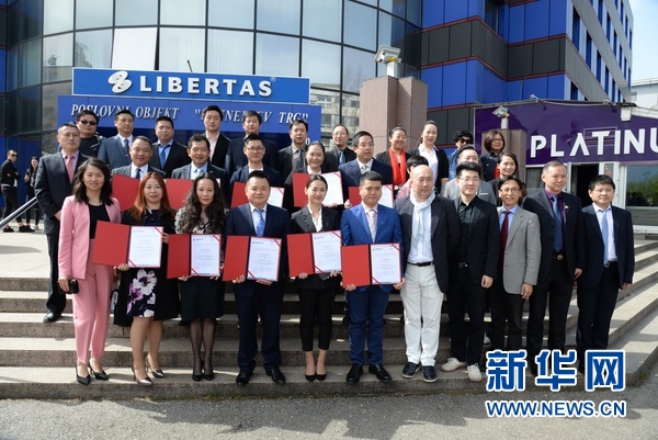 4月11日,首批通過克羅地亞導游職業(yè)資格考試的中國導游與歐洲地區(qū)華人旅游業(yè)者代表在薩格勒布合影。新華社記者高磊 攝?