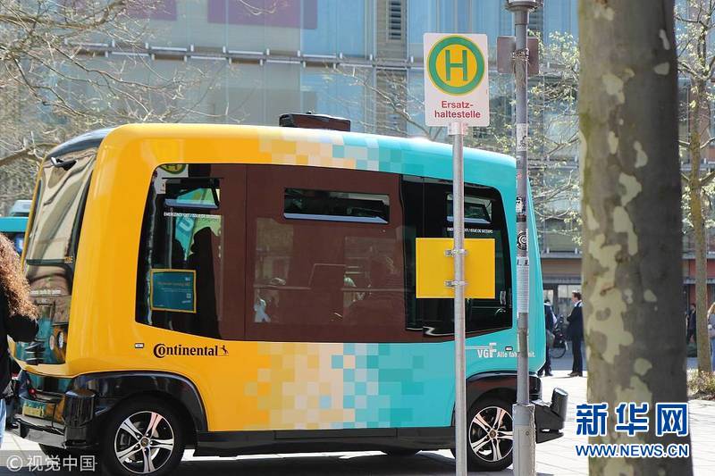 4月17日,德國法蘭克福,法蘭克福應(yīng)用科學大學測試自動駕駛擺渡巴士。(圖片來源:視覺中國)