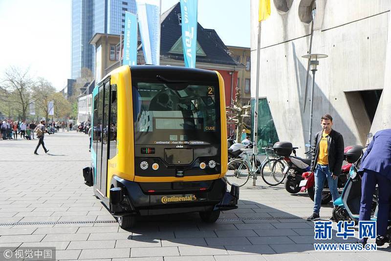 4月17日,德國法蘭克福,法蘭克福應(yīng)用科學(xué)大學(xué)測試自動(dòng)駕駛擺渡巴士。(圖片來源:視覺中國)