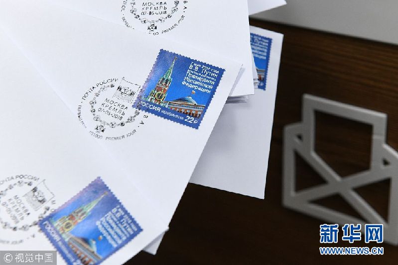 當(dāng)?shù)貢r(shí)間2018年5月7日,俄羅斯莫斯科,俄羅斯發(fā)行普京就職紀(jì)念郵票。(圖片來(lái)源:視覺(jué)中國(guó))