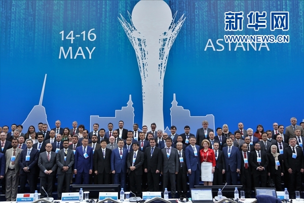 5月14日,在阿斯塔納,參會(huì)者合影。新華網(wǎng)發(fā) 阿比洛夫攝