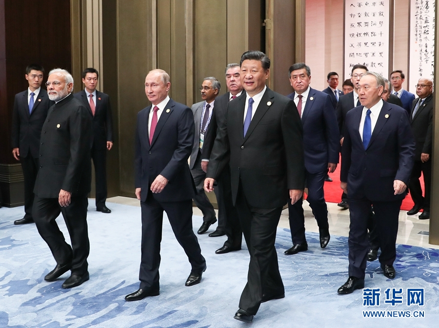 新華社青島6月10日電(記者孫奕、溫馨)上海合作組織成員國元首理事會(huì)第十八次會(huì)議小范圍會(huì)談10日在青島國際會(huì)議中心舉行。國家主席習(xí)近平主持。印度總理莫迪、哈薩克斯坦總統(tǒng)納扎爾巴耶夫、吉爾吉斯斯坦總統(tǒng)熱恩別科夫、巴基斯坦總統(tǒng)侯賽因、俄羅斯總統(tǒng)普京、塔吉克斯坦總統(tǒng)拉赫蒙、烏茲別克斯坦總統(tǒng)米爾濟(jì)約耶夫出席會(huì)議。各成員國領(lǐng)導(dǎo)人就上海合作組織發(fā)展以及重大國際和地區(qū)問題交換意見。