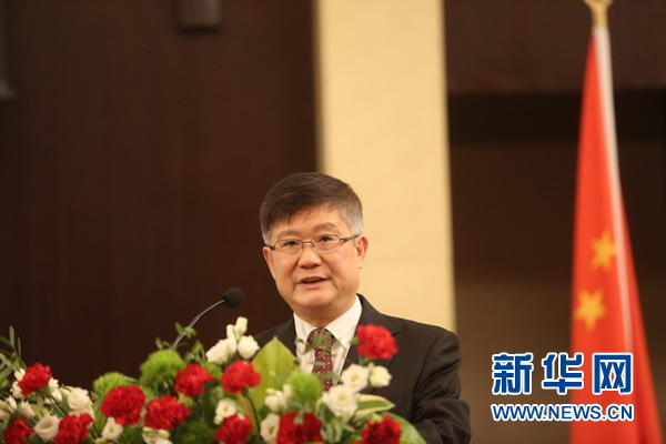 中國駐白俄羅斯大使崔啟明在獎(jiǎng)學(xué)金頒發(fā)典禮上致辭。新華網(wǎng)記者 魏忠杰攝