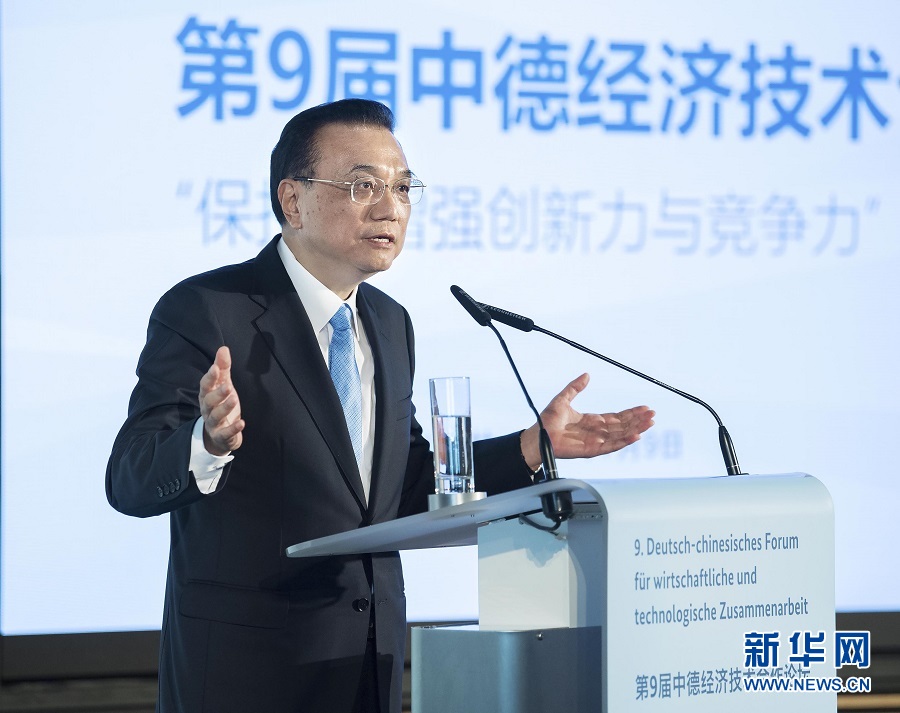 李克強(qiáng)表示,中德合作保持全面穩(wěn)定健康發(fā)展態(tài)勢(shì),長(zhǎng)期引領(lǐng)中歐合作,堪稱大國(guó)合作的典范,為兩國(guó)乃至世界經(jīng)濟(jì)發(fā)展注入了動(dòng)力。習(xí)近平主席去年對(duì)德國(guó)進(jìn)行成功訪問(wèn),同德方領(lǐng)導(dǎo)人共同規(guī)劃兩國(guó)關(guān)系發(fā)展。我與默克爾總理今天共同主持第五輪中德政府磋商,達(dá)成重要共識(shí)。我們一致同意繼續(xù)鞏固和提升政治互信,夯實(shí)中德全方位戰(zhàn)略伙伴關(guān)系的基礎(chǔ),推動(dòng)兩國(guó)合作向更高水平邁進(jìn),以中德合作的確定性、維護(hù)多邊主義的一貫性為世界和平與發(fā)展增添穩(wěn)定性。