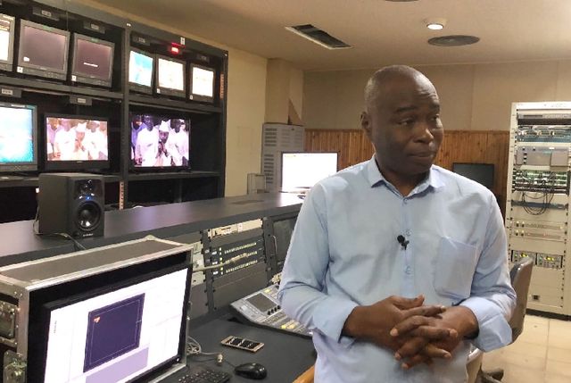 2018年7月19日,塞內(nèi)加爾國家電視臺新聞部主任達哈·巴在工作間接受記者采訪。(新華社記者孟娜攝)