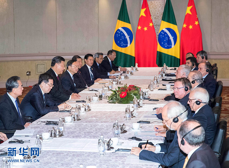習近平強調(diào),中巴雙方要加強對兩國各領域交流合作的引領和協(xié)調(diào),促進貿(mào)易自由化便利化,推動雙邊貿(mào)易高質(zhì)量增長,積極探討“一帶一路”倡議同巴西“投資伙伴計劃”等發(fā)展規(guī)劃對接,推進標志性項目,拓展創(chuàng)新合作,密切人文交流。中方愿同巴方攜手推進中拉整體合作,推動中國同葡萄牙語國家經(jīng)貿(mào)合作邁上新臺階。中方支持巴方辦好下屆金磚國家領導人會晤。