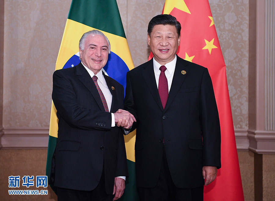 7月26日,國家主席習近平在南非約翰內(nèi)斯堡會見巴西總統(tǒng)特梅爾。 新華社記者 燕雁 攝