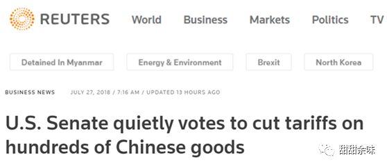 英國(guó)路透社日前報(bào)道,美國(guó)參議院7月26日通過了一個(gè)名為Miscellaneous Tariff Bill的法案,中文稱為“綜合關(guān)稅法案”或“關(guān)稅雜項(xiàng)法案”。報(bào)道的標(biāo)題頗有意味地用了個(gè)修飾詞“quietly”(靜悄悄地)——《美參議院悄悄通過立法降低數(shù)百種中國(guó)商品的關(guān)稅》。
