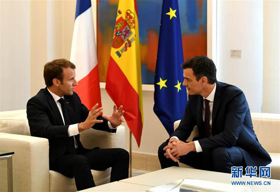 法國(guó)總統(tǒng)馬克龍7月26日在馬德里(圖左)與西班牙首相桑切斯舉行會(huì)談