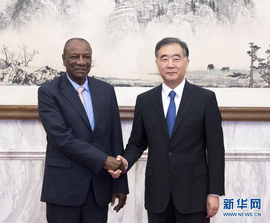 9月1日,全國政協(xié)主席汪洋在北京釣魚臺國賓館會見幾內亞總統(tǒng)孔戴。 新華社記者王曄攝