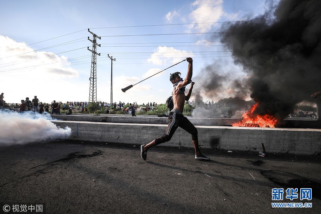 ????? 當?shù)貢r間2018年9月18日,加沙,巴勒斯坦人在加沙地帶北部邊境緩沖地帶舉行集會,抗議以色列對該地區(qū)的干預,遭到以色列軍隊反擊。(圖片來源:視覺中國)