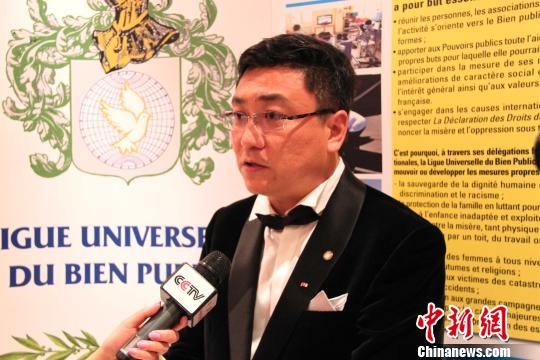 9月21日晚,中國(guó)工筆畫(huà)家崔景哲在巴黎榮獲全球公益聯(lián)盟文學(xué)(藝術(shù))金質(zhì)勛章,也是此次頒獎(jiǎng)典禮所有獲獎(jiǎng)?wù)咧形ㄒ灰晃恢袊?guó)人。圖為崔景哲接受媒體采訪。李洋 攝