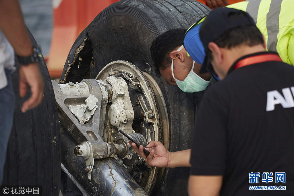 11月3日,印尼雅加達(dá),印尼獅航客機(jī)墜海搜救進(jìn)入第六天,印尼失事客機(jī)部分殘骸陸續(xù)打撈上岸。印尼國(guó)家搜救局2日表示,目前獅航失事客機(jī)的起落架、輪胎都已經(jīng)打撈上岸。同時(shí),遇難者遺體身份確認(rèn)工作也在進(jìn)行中。(圖片來(lái)源:視覺中國(guó))