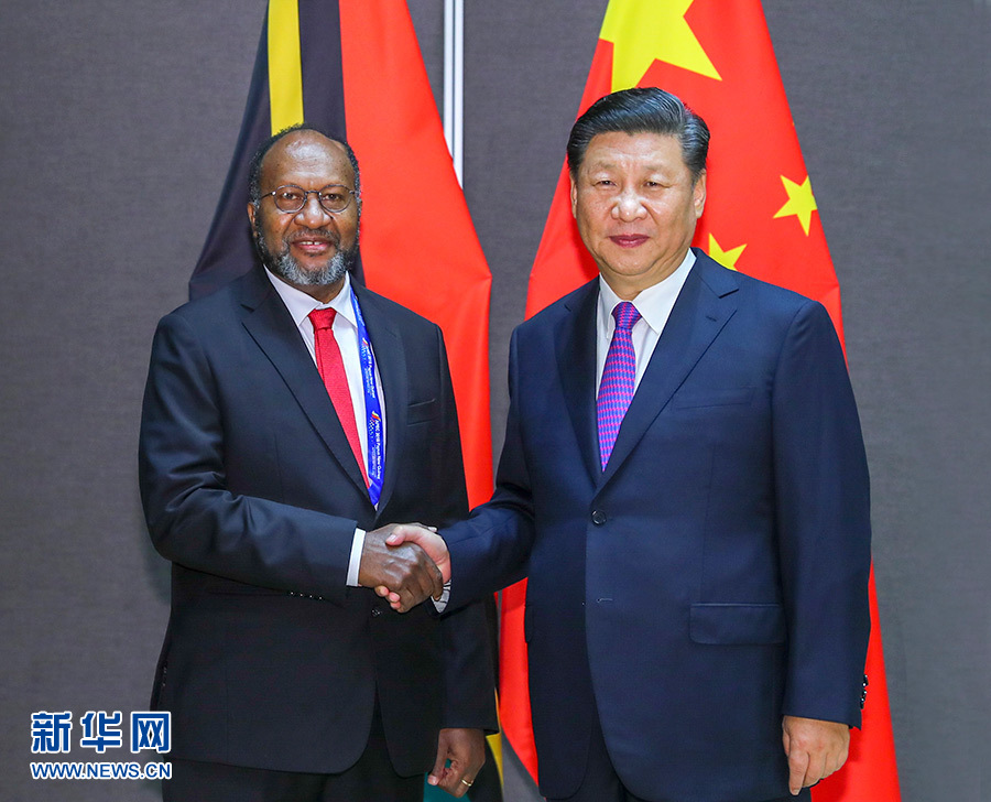 11月16日,國(guó)家主席習(xí)近平在莫爾茲比港分別會(huì)見(jiàn)建交太平洋島國(guó)領(lǐng)導(dǎo)人。這是習(xí)近平會(huì)見(jiàn)紐??偫硭?。 新華社記者 丁林 攝