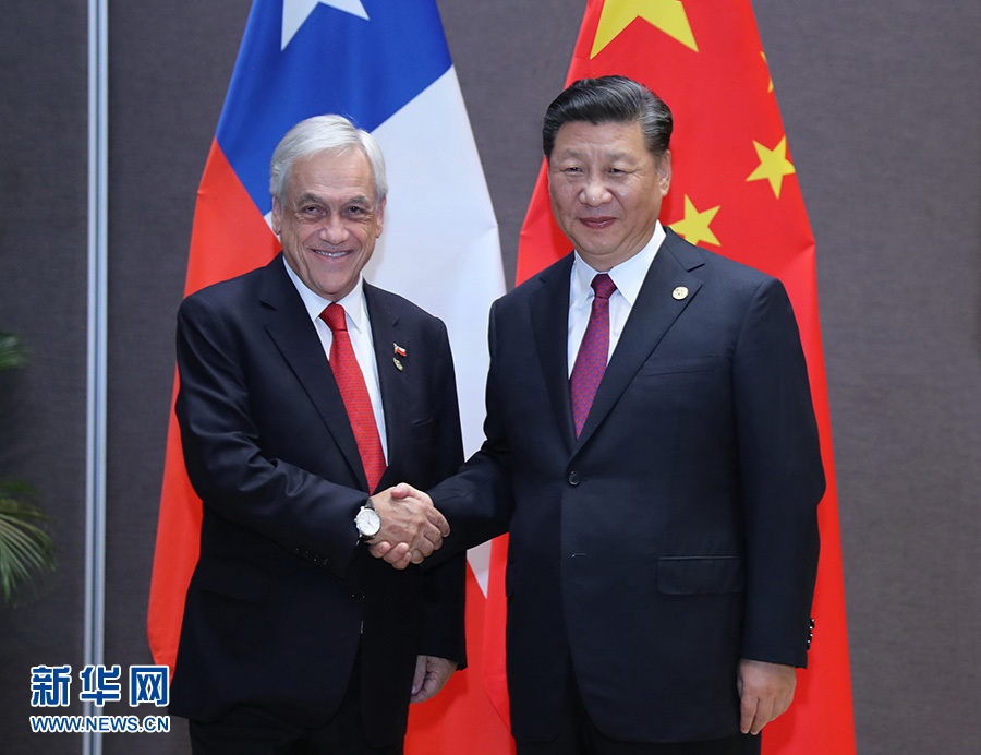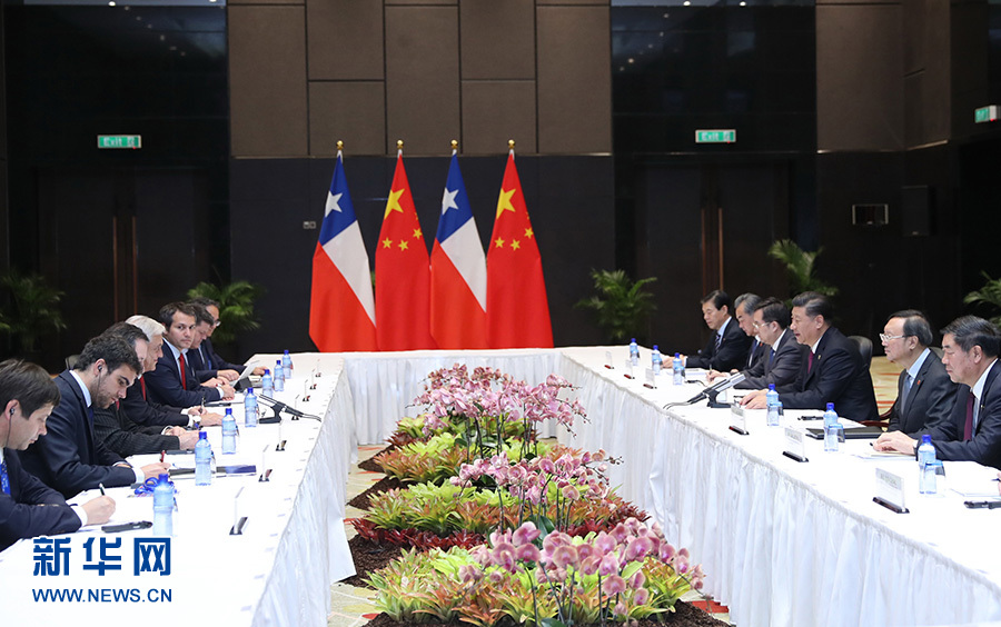 習近平強調(diào),中智已經(jīng)簽署“一帶一路”政府間合作協(xié)議,下一步要確定重點領(lǐng)域和項目,爭取實現(xiàn)早期收獲。要充分發(fā)揮雙邊合作機制作用。要以中智自由貿(mào)易協(xié)定升級為契機,推動擴大雙邊貿(mào)易規(guī)模,優(yōu)化貿(mào)易結(jié)構(gòu),深化投資合作,扎實推進重大互聯(lián)互通項目。2020年中智將迎來建交50周年,雙方要共同辦好一系列慶?;顒?。中方愿同智方加強科技、南極等領(lǐng)域合作。中方支持智利明年主辦亞太經(jīng)合組織領(lǐng)導人非正式會議,共同推進亞太自由貿(mào)易區(qū)建設(shè)。