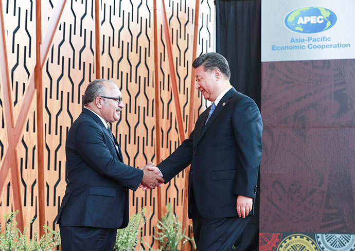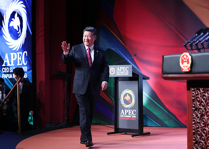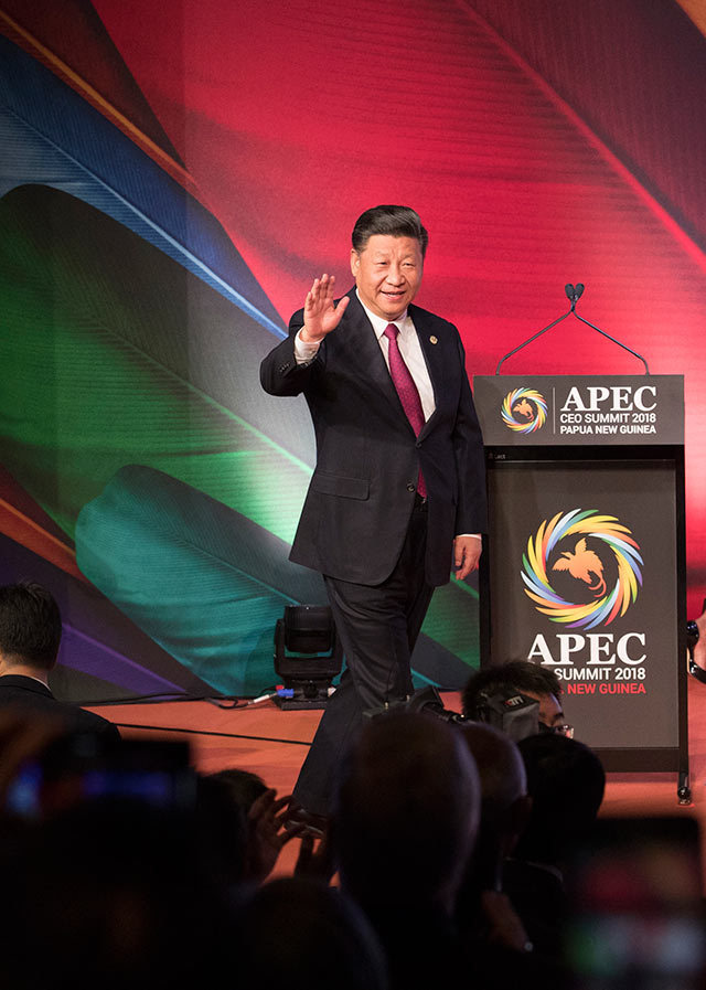 11月17日,國家主席習(xí)近平應(yīng)邀出席在巴布亞新幾內(nèi)亞莫爾茲比港舉行的亞太經(jīng)合組織工商領(lǐng)導(dǎo)人峰會并發(fā)表題為《同舟共濟創(chuàng)造美好未來》的主旨演講。新華社記者 鞠鵬 攝