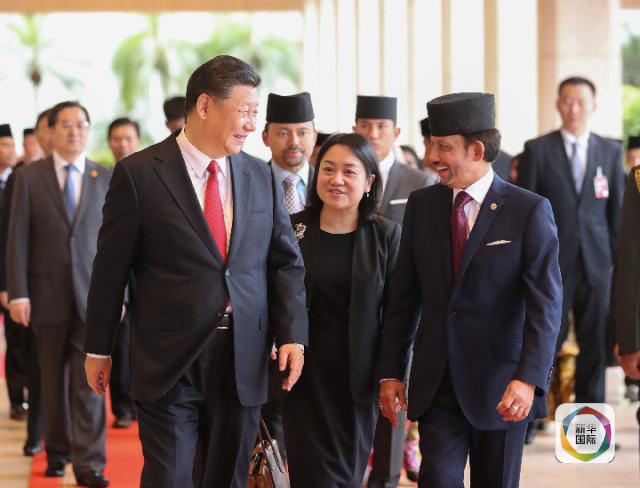 11月19日,國(guó)家主席習(xí)近平在斯里巴加灣同文萊蘇丹哈桑納爾舉行會(huì)談。這是會(huì)談前,習(xí)近平同哈桑納爾步入會(huì)場(chǎng)。新華社記者 鞠鵬 攝