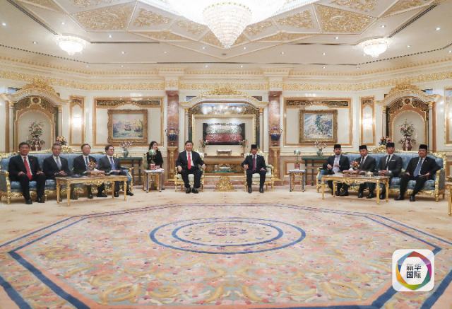 11月19日,國(guó)家主席習(xí)近平在斯里巴加灣同文萊蘇丹哈桑納爾舉行會(huì)談。新華社記者 鞠鵬 攝