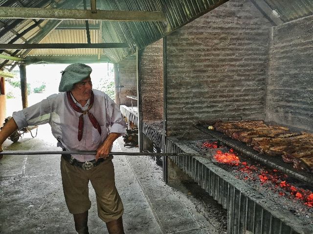 在布宜諾斯艾利斯市郊的圣·蘇珊娜農(nóng)場,男主人在為客人制作傳統(tǒng)阿根廷烤肉。(新華社記者王曄攝)