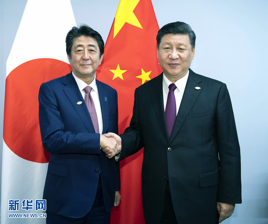 ——會(huì)見(jiàn)日本首相安倍晉三,指出雙方要建設(shè)性地把握好中日關(guān)系發(fā)展方向,在中日四個(gè)政治文件原則基礎(chǔ)上,共同開(kāi)辟兩國(guó)關(guān)系新前景。