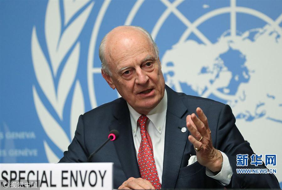 當(dāng)?shù)貢r(shí)間2018年12月18日,瑞士日內(nèi)瓦,聯(lián)合國(guó)秘書長(zhǎng)敘利亞問題特使德米斯圖拉參加討論組建敘利亞憲法委員會(huì)問題的會(huì)議并出席新聞發(fā)布會(huì)。(圖片來(lái)源:視覺中國(guó))