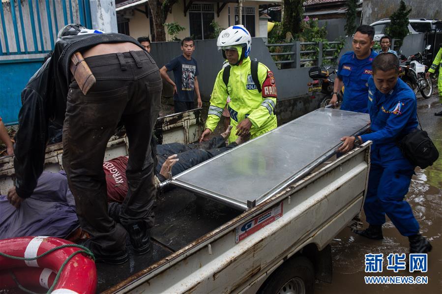 12月23日,在印度尼西亞萬丹省板底蘭,救援人員在運送遇難者遺體。印度尼西亞抗災署23日晚說,該國西部巽他海峽22日晚發(fā)生的海嘯造成的遇難者人數已升至222人。 新華社發(fā)(維里 攝)