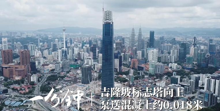 一分鐘,吉隆坡標(biāo)志塔向上泵送混凝土約0.018米