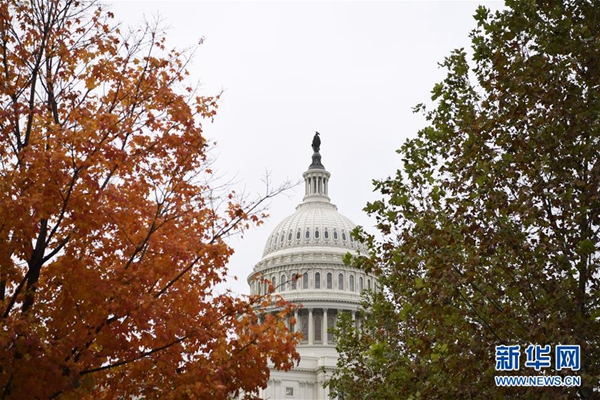 這張2018年11月6日拍攝的資料照片顯示,在美國(guó)華盛頓,國(guó)會(huì)大廈掩映在樹木之間。 新華社記者 劉杰 攝