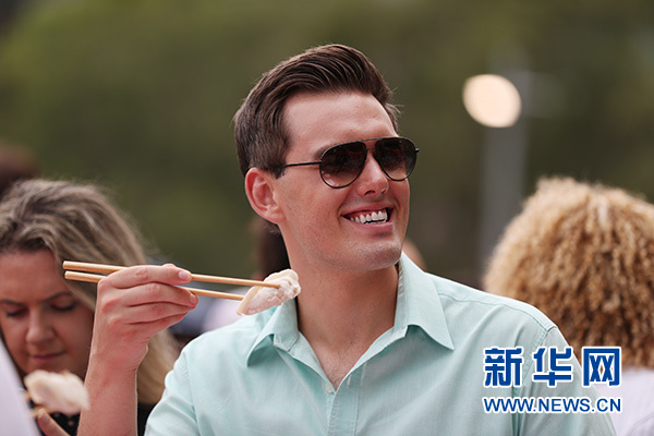 2月5日,在澳大利亞悉尼,一名市民參加餃子宴活動(dòng)。 新華社記者 白雪飛 攝