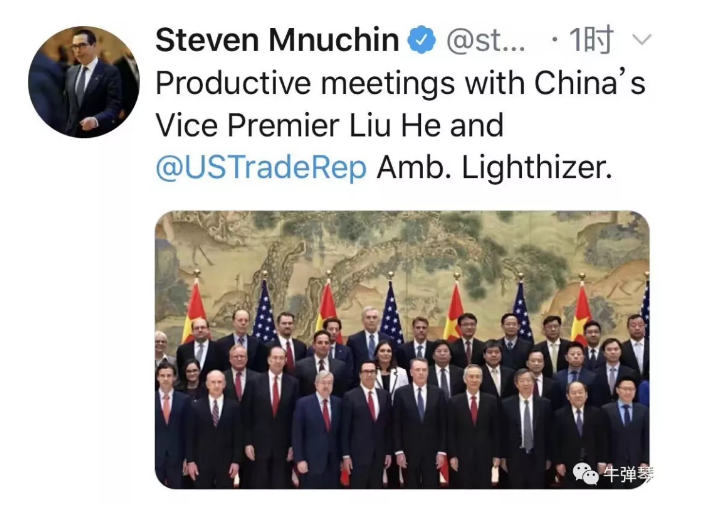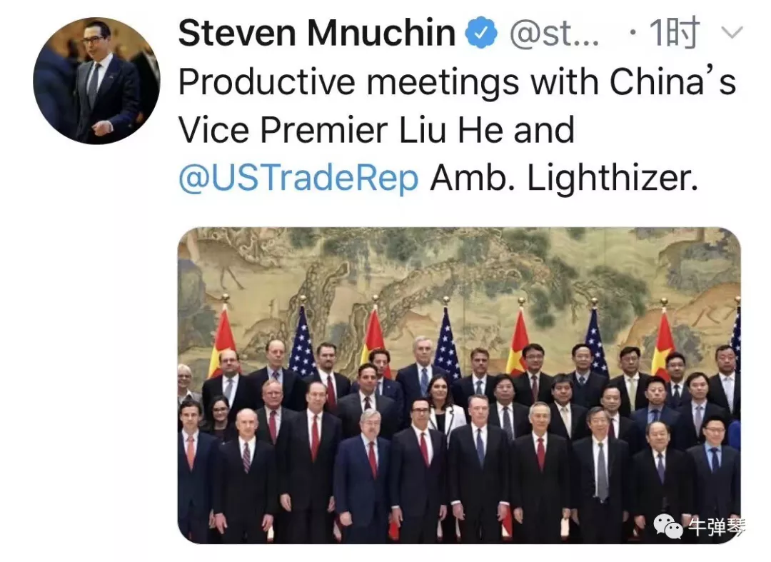 很有意思的,這次磋商一結(jié)束,美國財長姆努欽立刻發(fā)了一條推特,上面寫道:和劉鶴副總理、萊特希澤大使進行了富有建設(shè)性的會議。
