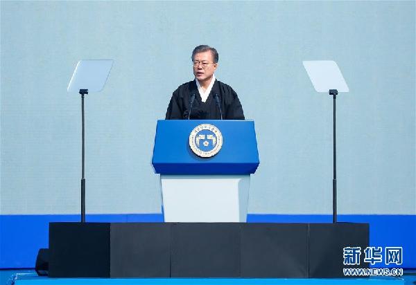 3月1日,韓國總統(tǒng)文在寅在首爾舉行的“三一運(yùn)動(dòng)”100周年大會(huì)上發(fā)表講話。 韓國總統(tǒng)文在寅1日在首爾光化門廣場(chǎng)出席紀(jì)念“三一運(yùn)動(dòng)”100周年大會(huì)時(shí)發(fā)表講話表示,韓國將力推構(gòu)建“新半島體系”,實(shí)現(xiàn)韓朝之間共建“和平合作共同體”和“經(jīng)濟(jì)合作共同體”。新華社記者 王婧嬙 攝