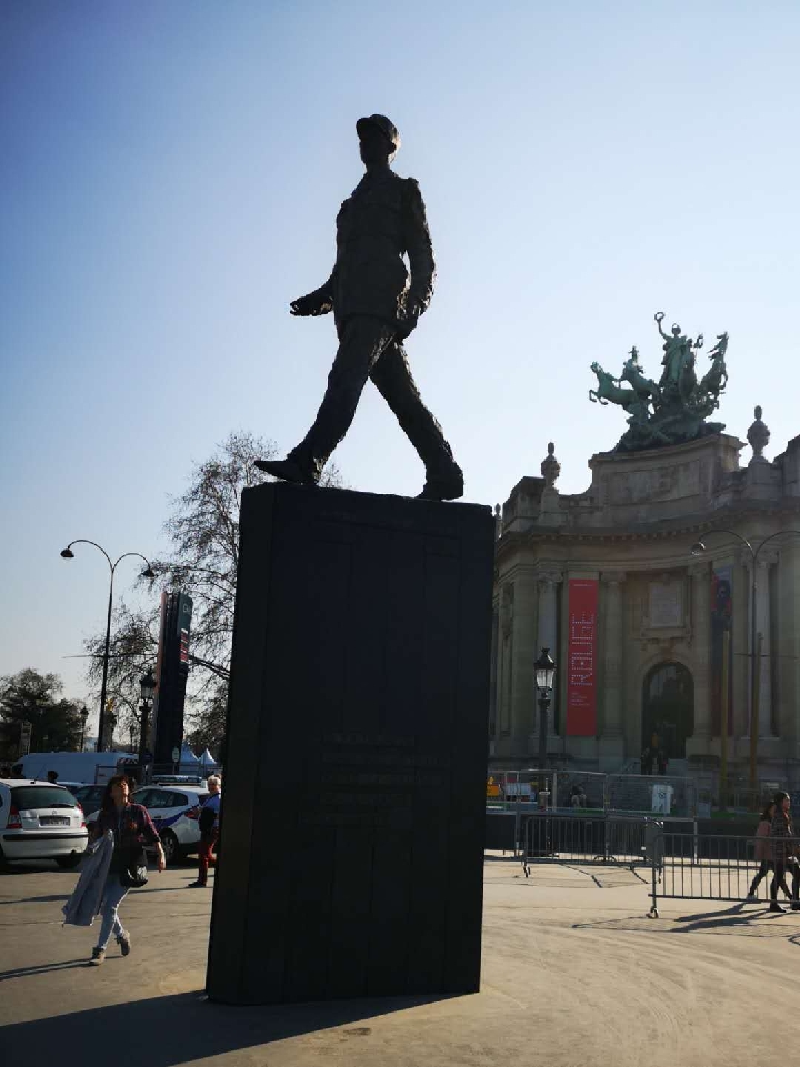 如果說(shuō)埃菲爾鐵塔是巴黎浪漫之都的代表,那么凱旋門(mén)就是見(jiàn)證法蘭西榮光與夢(mèng)想的政治地標(biāo)。至今,這里仍是法國(guó)國(guó)慶、閱兵以及迎接尊貴客人等重要慶典或政治活動(dòng)的舉辦地。以凱旋門(mén)為圓心,12條大道向巴黎各方輻射開(kāi)去,以八方游客的“打卡勝地”香榭麗舍大街最為寬闊。熙攘人流中,靜靜矗立一座銅像——深受法國(guó)人愛(ài)戴的戴高樂(lè)將軍邁步向前。