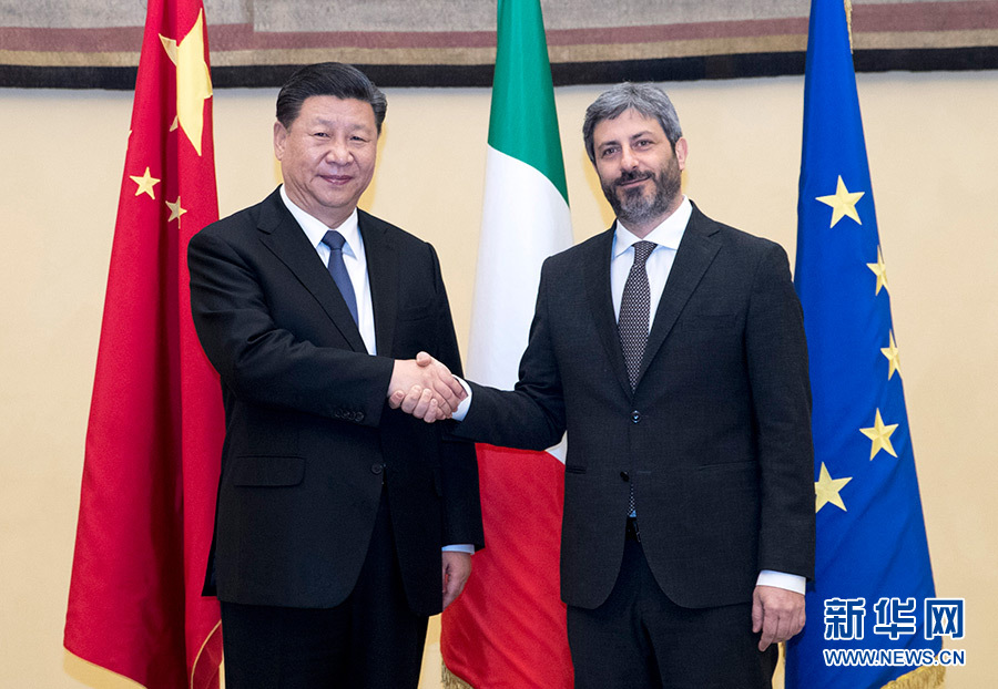 3月22日,國家主席習近平在羅馬會見意大利眾議長菲科。(新華社記者王曄攝)