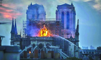 盡管火災(zāi)現(xiàn)場周邊的道路已經(jīng)被封鎖,但仍有上千的巴黎市民和游客聚集在警戒線周圍,不少人自發(fā)唱起祈禱歌曲,人們的臉上寫滿了痛心和遺憾,但并沒有失去希望。有巴黎市民向記者表示:“巴黎的城市銘言就是‘歷經(jīng)風(fēng)浪,永不沉沒’,盡管這場大火是一次大的災(zāi)難,但我相信在全法國和全世界人民的幫助下,圣母院一定能夠重新煥發(fā)出往日的風(fēng)采?!?/p>