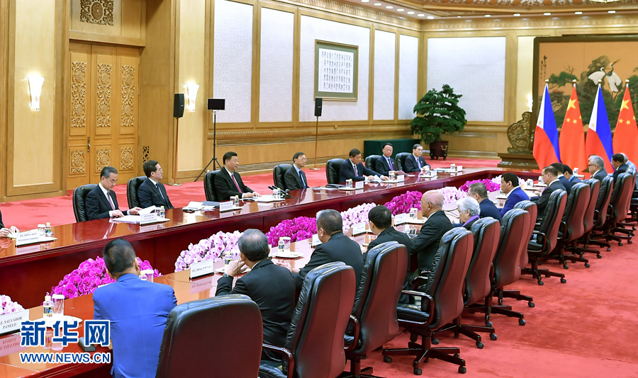 習(xí)近平指出,過去3年,中菲關(guān)系完成轉(zhuǎn)圜、鞏固、提升“三部曲”,步入新的發(fā)展階段。實(shí)踐證明,中菲堅(jiān)持睦鄰友好順應(yīng)歷史潮流,符合人民期待,是唯一正確選擇。我每次同你交談都推心置腹,坦誠相見,為的是我們兩國和兩國人民的福祉。我愿同總統(tǒng)先生一道,繼續(xù)從戰(zhàn)略高度和長遠(yuǎn)角度把握好兩國關(guān)系正確航向。雙方要堅(jiān)持睦鄰友好的大方向,共創(chuàng)攜手發(fā)展的大格局,發(fā)揮妥處分歧的大智慧,把握世界發(fā)展的大潮流。共建“一帶一路”倡議同總統(tǒng)先生提出的“大建特建”規(guī)劃高度契合,雙方合作卓有成效。中方愿同菲方深化發(fā)展戰(zhàn)略對接,在共建“一帶一路”框架內(nèi)打造合作亮點(diǎn),深化中菲兩國以及地區(qū)各國聯(lián)通和發(fā)展。雙方要重信守諾,發(fā)揚(yáng)伙伴精神,保持南海和平穩(wěn)定,加強(qiáng)海上合作。中方將繼續(xù)在禁毒、反恐等問題上全力支持菲律賓人民的正義事業(yè)。
