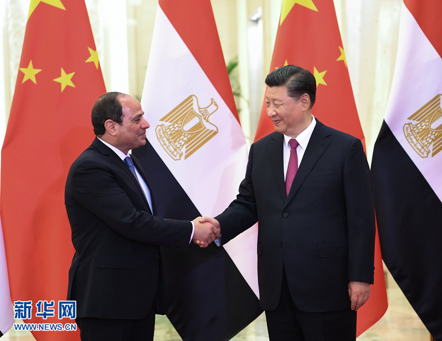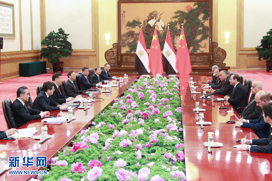 習近平強調(diào),埃及是非洲聯(lián)盟輪值主席國,總統(tǒng)先生來華出席第二屆“一帶一路”國際合作高峰論壇,不僅體現(xiàn)了埃及積極參與共建“一帶一路”的真誠意愿,也代表著非洲國家尋求互利共贏、實現(xiàn)共同發(fā)展的普遍呼聲。中方高度重視發(fā)展同埃及關系。雙方要深化政治互信,繼續(xù)在涉及彼此核心利益和重大關切問題上相互支持和配合。中方始終支持埃及探索符合本國國情的發(fā)展道路,愿積極參與蘇伊士運河走廊開發(fā)計劃,持續(xù)推進蘇伊士經(jīng)貿(mào)合作區(qū)建設及產(chǎn)能、基礎設施建設等領域合作。中方還將在埃及設立“魯班工坊”,向埃及青年提供職業(yè)技能培訓。雙方要深化反恐和安全合作,持續(xù)密切人文交流。中國感謝非洲人民對中國的信任,我們支持非洲和平安全與可持續(xù)發(fā)展倡議和非洲一體化進程,愿同埃方加強對非三方合作,共同促進非洲基礎設施建設。