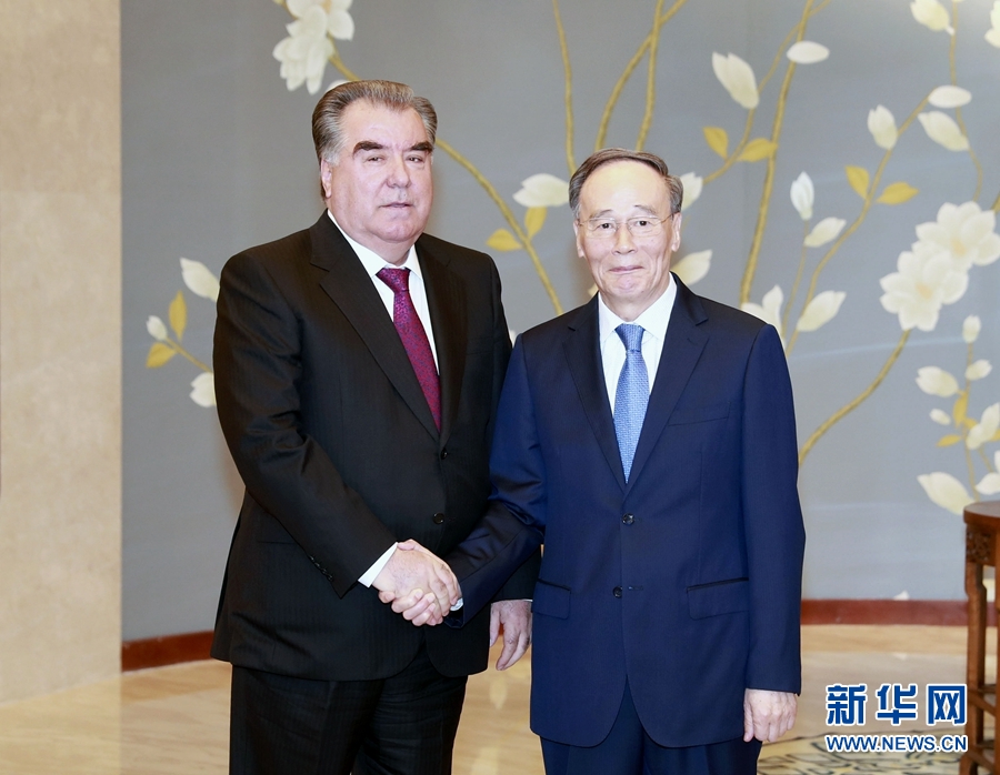王岐山表示,近年來,在兩國元首的推動(dòng)下,中塔關(guān)系實(shí)現(xiàn)戰(zhàn)略升級,樹立了睦鄰友好、合作共贏的典范。習(xí)近平主席和總統(tǒng)先生剛剛成功會(huì)晤,為兩國關(guān)系進(jìn)一步發(fā)展指明了方向。中塔山水相連,在捍衛(wèi)國家獨(dú)立和尊嚴(yán)、促進(jìn)經(jīng)濟(jì)發(fā)展和維護(hù)社會(huì)穩(wěn)定上有共同利益,在共建“一帶一路”上有廣泛共識。中方愿同塔方一道,落實(shí)好兩國元首共識,繼續(xù)在涉及彼此核心利益問題上相互堅(jiān)定支持,筑牢中塔安全命運(yùn)共同體。