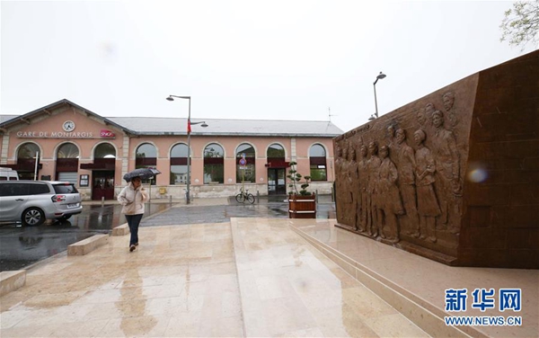 5月4日,在距法國(guó)巴黎100多公里的小城蒙塔日,《百年豐碑》大型雕塑被安放在火車(chē)站前的鄧小平廣場(chǎng)。新華社記者 高靜 攝
