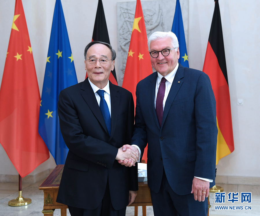 應(yīng)德國聯(lián)邦政府邀請(qǐng),國家副主席王岐山當(dāng)?shù)貢r(shí)間5月30日至6月2日訪問德國。這是5月31日,王岐山在柏林會(huì)見德國總統(tǒng)施泰因邁爾。 新華社記者 饒愛民 攝