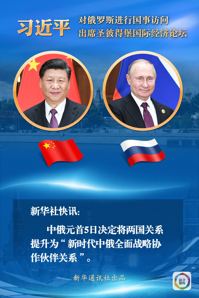 新華社快訊:中俄元首5日決定將兩國關(guān)系提升為“新時(shí)代中俄全面戰(zhàn)略協(xié)作伙伴關(guān)系”。